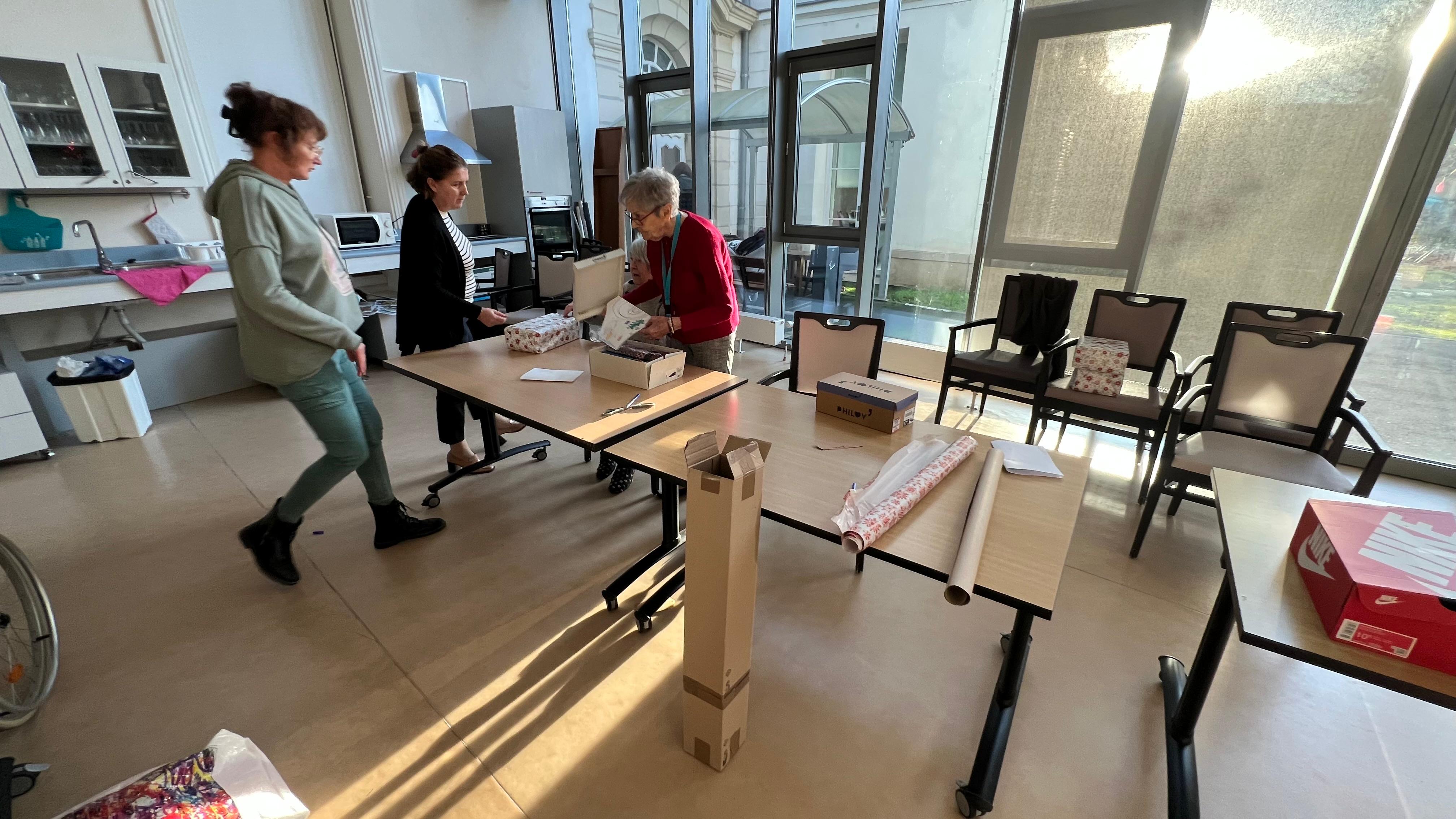 Nous avons préparé des colis solidaire, cette démarche permet aux résidents d’être les lutins du père noël pour les plus démunis.