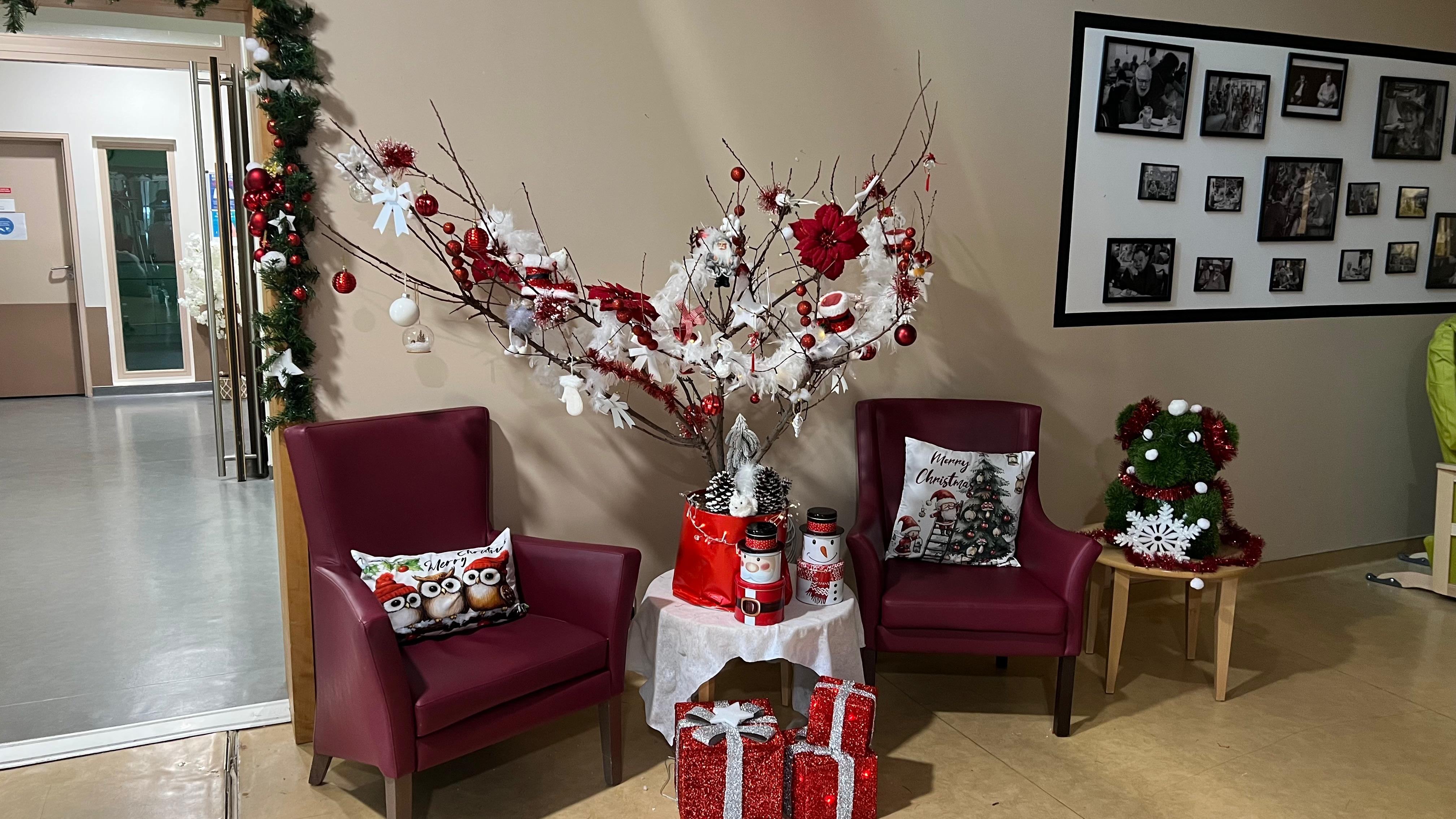 Nous avons également décoré la Résidence aux couleurs de noël : Rouge et Blanc.